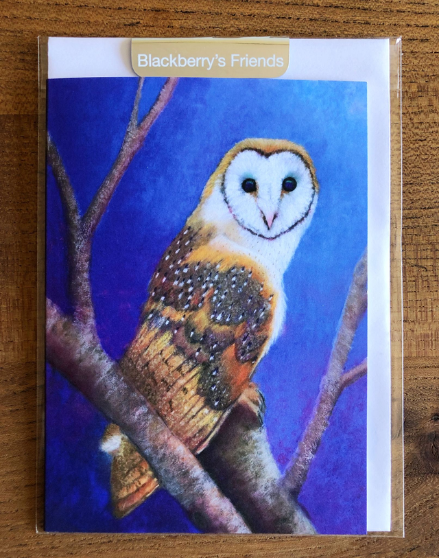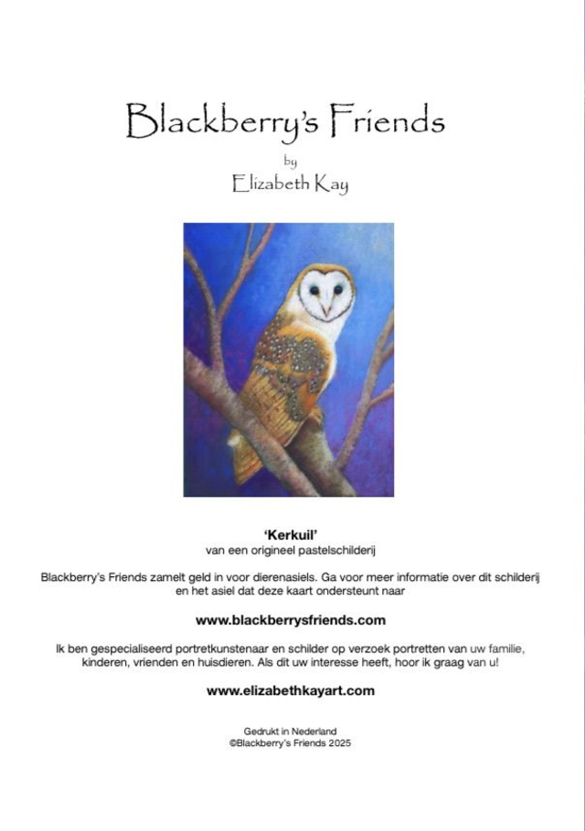 'De Kerkuil'©2025 from an original pastel painting. 105mm x 148mm with ice white envelope. Blank inside for your own personal message. The proceeds from this card are shared with Stichting Flappus Zwolle.