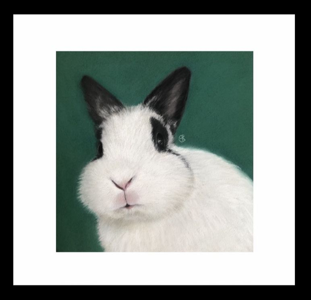 'Arie'©2024 from an original pastel painting. Size including border: 205mm x 205mm (unframed), 255mm x 255mm (framed). The proceeds from this print are shared with Stichting Opvang Konijnenparadijs.