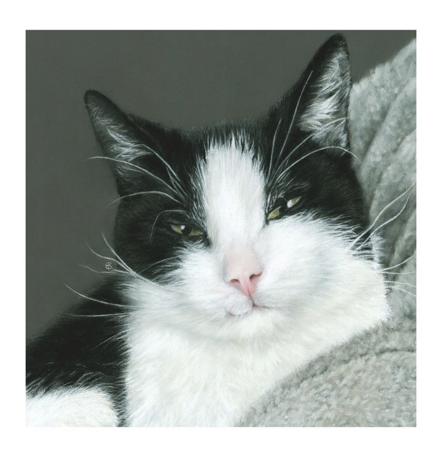 'Finn'©2024 from an original pastel painting. Size including border: 205mm x 205mm (unframed), 255mm x 255mm (framed). The proceeds from this print are shared with Stichting Opvang Konijnenparadijs.