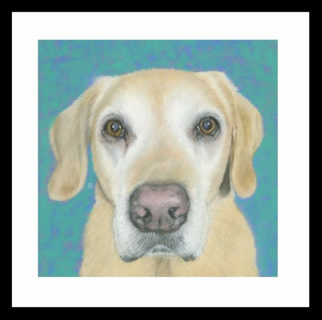 'Sandy'©2025 from an original pastel painting. Size including border: 205mm x 205mm (unframed), 255mm x 255mm (framed). The proceeds from this print are shared with Broken Biscuits, UK.